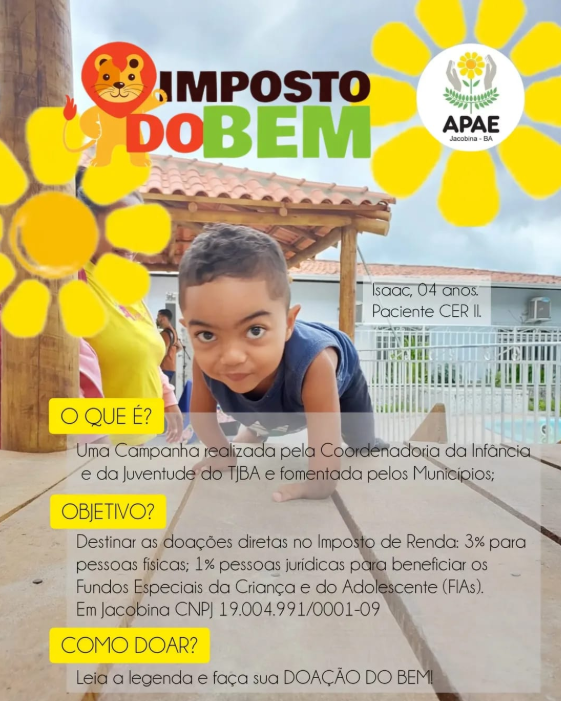 Você pode contribuir com o trabalho da APAE Jacobina de forma simples e segura: faça uma doação direta!